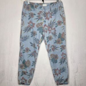 MOTHER Women's The No Zip Misfit Floral Pants Fresh Cut Chambray Jogger Size 27