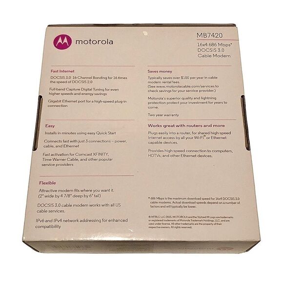 MOTOROLA MB7420 16x4 686Mbps DOCSIS 3.0 Cable Modem (New) Black Color Open Box