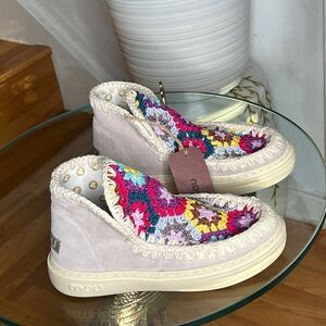 MOU Crochet Crush Ankle Boots - Chalk Multi