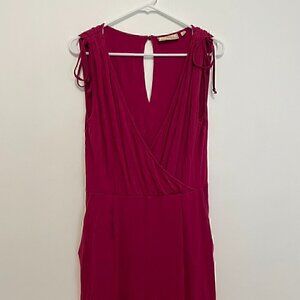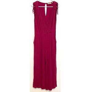 - solid magenta and/or berry raspberry pink approx sleeveless v-neck / surplice faux wrap sleeveless wide leg jumpsuit / romper