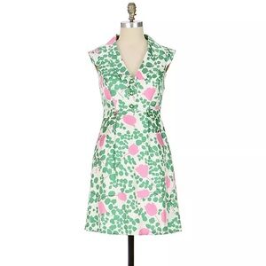 MOULINETTE SOEURS Anthropology Women's Green & Pink Leaf Floral Print Dress 4