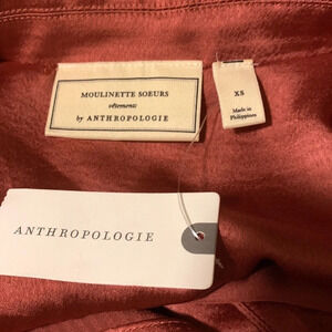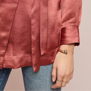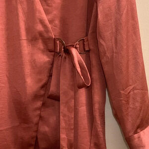 MOULINETTE SOEURS by ANTHROPOLOGIE Satin Wrap Blouse in Peach Peche