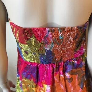 Gorgeous color splash.Front buttoned detailing down chest. Great condition. Elastic panel on backside at bust. Has side stays to keep bust in line. Mid length. Vibrant colors! Hidden side pockets. Side zipper. Lined. Measurements taken laying flat and approximate.
