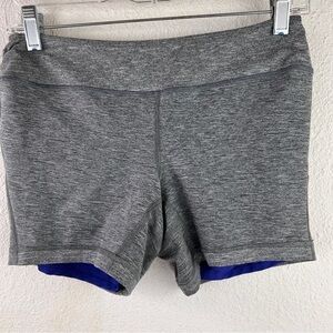 MOUNTAIN HARDWARE Gray & Blue running Shorts w/Back Inside Zipper. Size Small