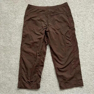 MOUNTAIN HARDWEAR Women OL1153 Brown Cropped Hiking Capri Pants SZ 10 Zip Pocket. Preowned condition, normal wear, light fading, loose threads on back pocket, pictures provided