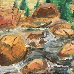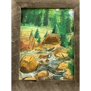 MOUNTAIN STREAM Painting in Rustic Frame 12.5 x 15.5”