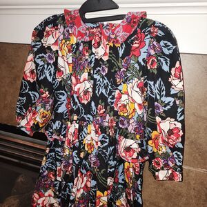 MOUSE FEATHERS Sz 7 Vtg Floral Cottagecore Prairie Girls Pleated Midi Dress