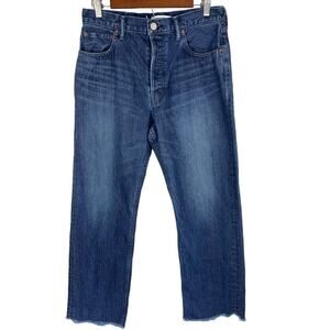 MOUSSY CAPAC WIDE STRAIGHT BUTTON FLY CROPPED JEANS IN BLUE NWOT WOMEN'S SIZE 29