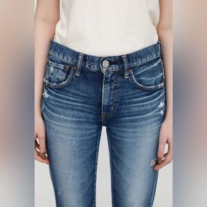 A cool pair of premium MOUSSY VINTAGE crop jeans, broken in with heavy fading and shredded holes