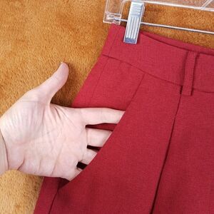 MOUSSY Pants Womens Size 1 Red Pleated High Rise Wide Leg Ankle Pockets Retro
