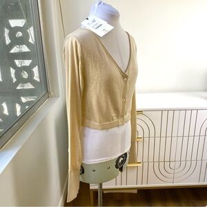 MOUSSY VINTAGE Champagne V-Neck Cropped Cardigan, Made in Japan, Size M, NWT