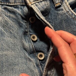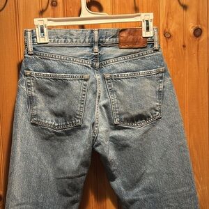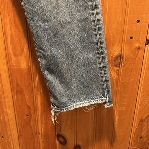 Moussy straight leg jeans. Raw hem. No callouts to note other than missing size tag. Measures 13 inches at waist. Button fly.