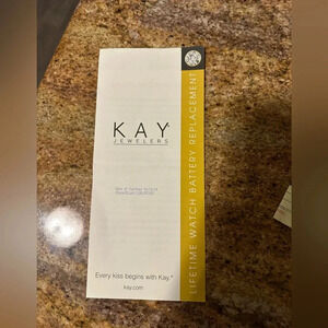 Comes with everything pictured. Has a lifetime battery replacement from the store. That will be included and you can take this watch to any Kay store and they can add it to your store jewelry box, and they will replace the battery for the lifetime of the watch. No scratches on the screen shows no sign of any wear. It was worn maybe three times to special occasions and always kept in the box. Reasonable offers will be considered, but no trades on this I’m sorry.