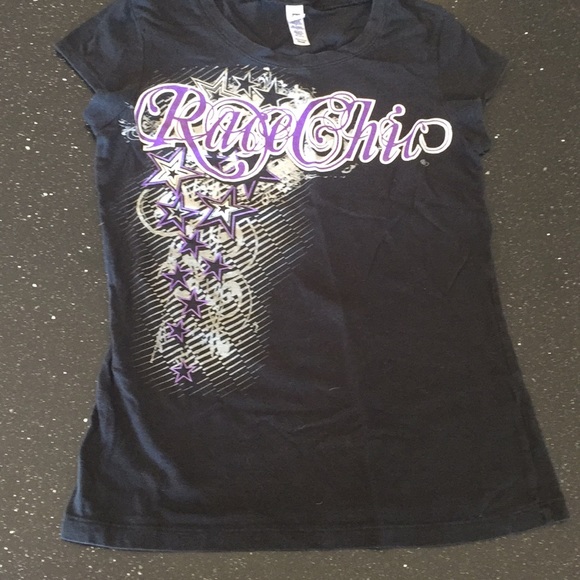 Black tee with “Race Chic” graphic across front. Great condition.