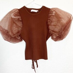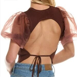 🔥SALE🔥 ASTR brown sheer puff sleeves open back top Medium