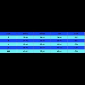 💙Navy blue lace up bandeau. 💙(a little dark in my pic) 💙Molded padded top 💙Pretty white lining 💙Bottoms are moderate coverage 💙Please feel free to ask about sizing!!