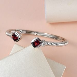 MOZAMBIQUE GARNET CUFF BRACELET | Platinum Bond (7.25 In) 3.50 ctw Cushion Cut