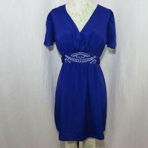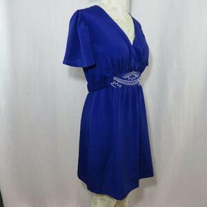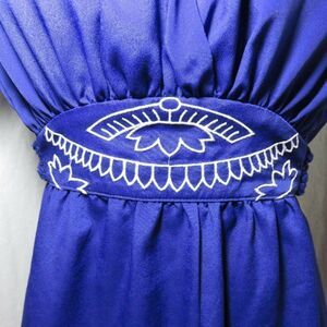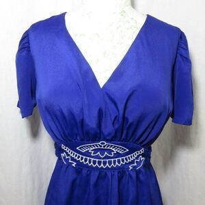 MOdcloth Pinup Retro M Cobalt Blue Dress Belted Embroidered Waist