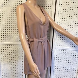 Mauve belted sleeveless romper with v-neck and back๐๐๐๐ length 30