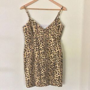 Stylish leopard print mini dress with thin straps. Perfect for a chic look.