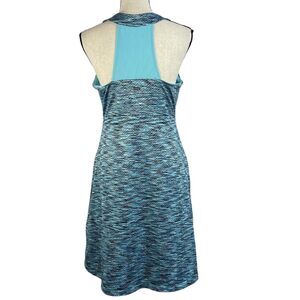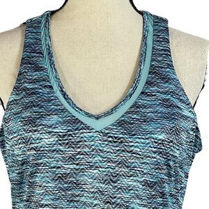 MPG Large A-Line Dress Sleeveless Racerback Stretch V-Neck Pockets Abstract Blue