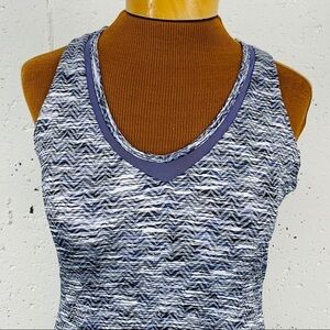 MPG Small Mondetta Lavender Gray Athletic Stretch Dress with built in bra in good preowned condition. There is some wear/ damage to inside elastic on shelf bra.