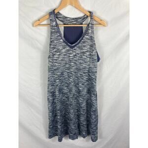 Lightweight fabric with comfort stretch, built in bra with removable cups, mesh racerback panel for breathable contrast style, flattering seam lines, and 2 side seam pockets. Purple and Gray space dye print. Sport dress perfect for tennis, pickleball, hiking, travel, etc.
