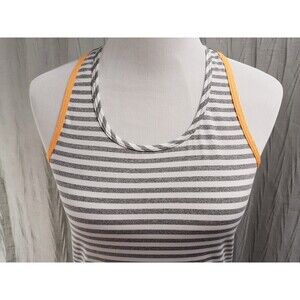 MPG Active Hi-Low Tank Top Gray White Stripe w Orange Trim Womens Size M