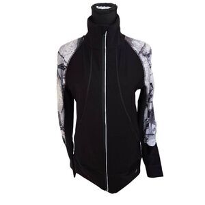 MPG Womens Mock Neck Athletic Warm Up Jacket Black White Medium