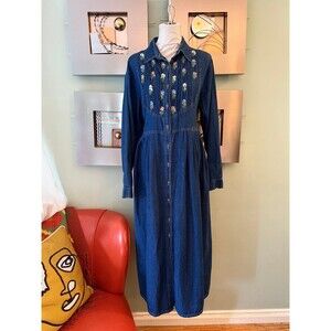 Great condition MPH Blues denim embroidered long sleeve maxi dress. Size large