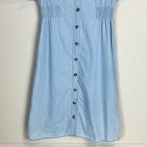 MPH Collection Chambray Button Up V-neck Sheath Midi Dress S
