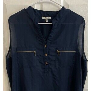 MPH Collection Sleeveless Top. Size 2X. Dark Blue. 3 buttons. 2 zipper pockets. 100% polyester. Smoke free home. B5