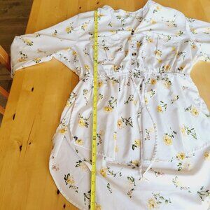 MPH Collection Womens White Floral Blouse Short Sleeve Drawstring Waist 1X BOHO