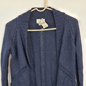 Beautiful, soft, 100% cotton. Open front cardigan with pockets. Navy Blue, size Xs. Retail $575