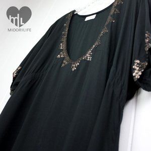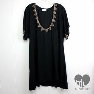 Bronze sequin borders enliven this airy cover-up with a dipped neck and relaxed silhouette.