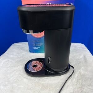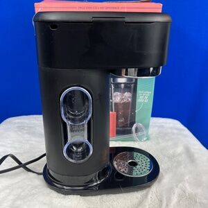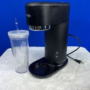 Mr. Coffee Iced Coffee Maker, Single Serve Hot and Cold Coffee Maker with 22 ounce Reusable Tumbler, Filter. This is for a fresh coffee lover! Hot coffee on one side, cold/iced on the other. Pod free. I took it out. Never used it. I personally drink way too much coffee and don't mind drinking the same coffee for days so I'm a big pot coffee gal. I managed to even get it packed up almost just as it came in the plastic bags, etc, so you can even gift it.: ) Please note, it does weigh over 5 pounds, so I will be paying the extra shipping cost.