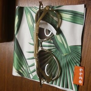 The frame's design was inspired by the 80s Los Angeles pool scene & the work of fashion photographer Helmut Newton. Its classic aviator shape draws inspiration from the period, & custom layered gradient mirror lenses and precious metal plating reflect the street’s luxury setting.