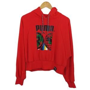 MR Puma INTL Red International Global Cat Logo Graphic Hoodie Sweater NWT S