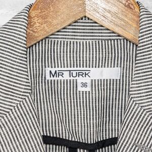 MR TURK Men's 2 button Blazer Jacket white gray striped Cotton size 36