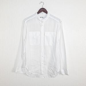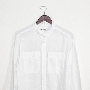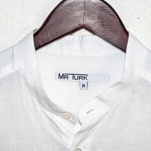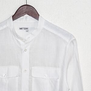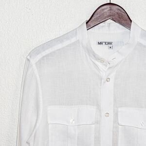 MR TURK Men's Medium 100% Linen Band Collar Shirt in White Long Sleeve