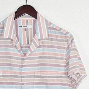 MR TURK Men's Short Sleeve Button up Shirt Pastel Stripe Cotton sz Small