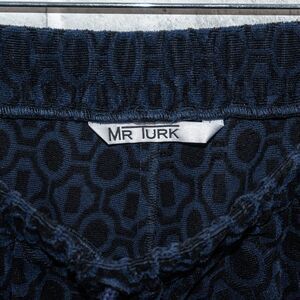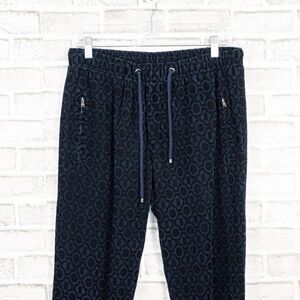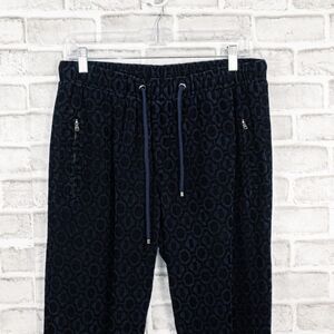 MR TURK Men's Size 32 Navy Blue Drawstring Pants Geo Print terry ankle Zip