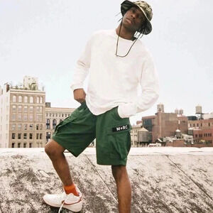 M+RC Noir EOM Cargo Pocket Mesh Lined Drawstring Shorts in Forest