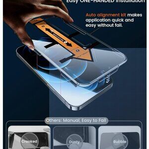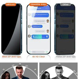 The MRGLAS 2-Pack Privacy Screen Protector & 2 pack Camera Protector is specifically designed for the iPhone 12 Pro Max, providing both protection and privacy. Made with tempered glass material, this screen protector offers 9H+ hardness for added durability. It also features anti-fingerprint and anti-spy properties, ensuring your device remains clean and secure. The pack includes an auto alignment tool for easy installation, making it a convenient choice for Apple users looking to safeguard their phone's display.