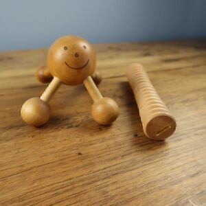 THE ORIGINAL MR. HAPPY MASSAGE INSTRUMENT ALONG WITH A WOODEN FOOT MASSAGE LYMPHATIC DRAINAGE INSTRUMENT VINTAGE COLLECTION BUNDLE