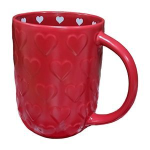 MRK Red Ceramic Coffee Mug Embossed Hearts Christmas Holiday Valentines Day Gift Idea