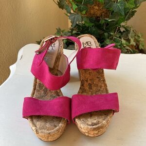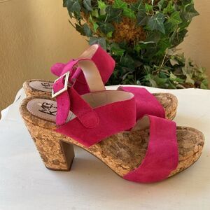 MRKT. Market Women’s Holly Berry Suede Cork Heel Sandals Size 9.5 Barbiecore