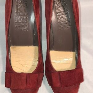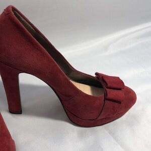 MRKT Heels Suede platforms Beautiful wine color Bow detail minimal wear 4”heel Glued in pad see photo Vintage look