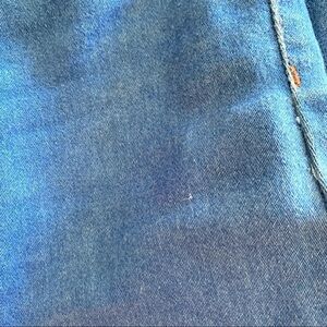In used condition. Pulling/wear on the crotch area and on the leg, minor snags, shown in the photos.