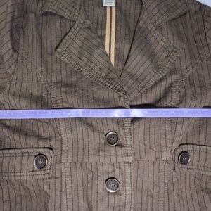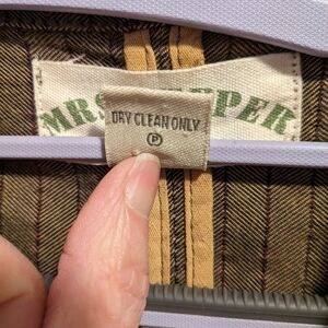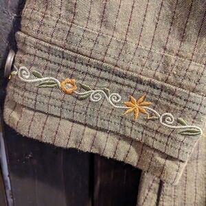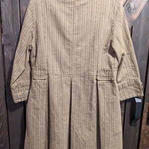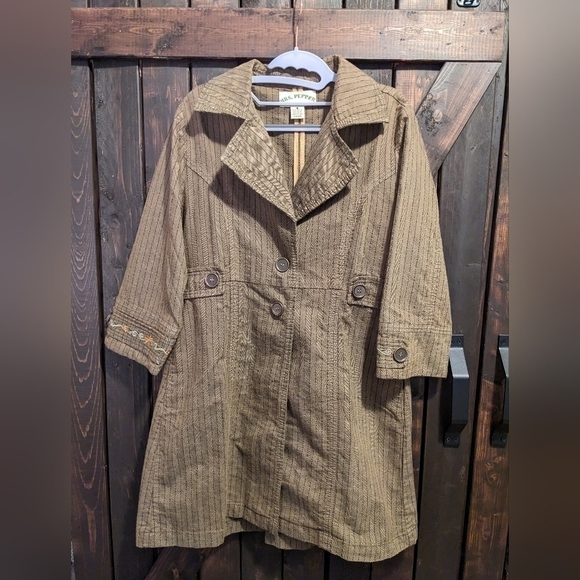Mrs Pepper Size S unlined coat. Embroidery on 3/4 length sleeves, pleated back. Color is more of an olive green.